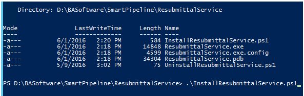 .\InstallResubmittalService.ps1 - When prompted, enter a valid Domain account that can Log on as a Service.