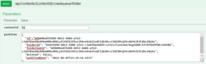 This endpoint is exposed by Connectivity Hub and it should be used to push items and folders for crawling.