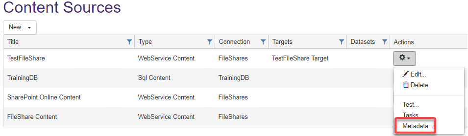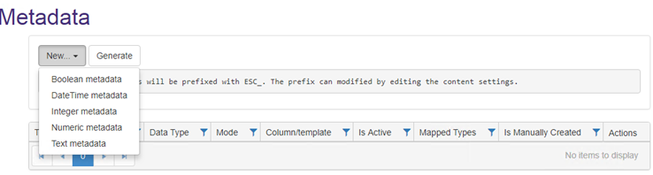 4. New: Click New to select the type of metadata that you will use.