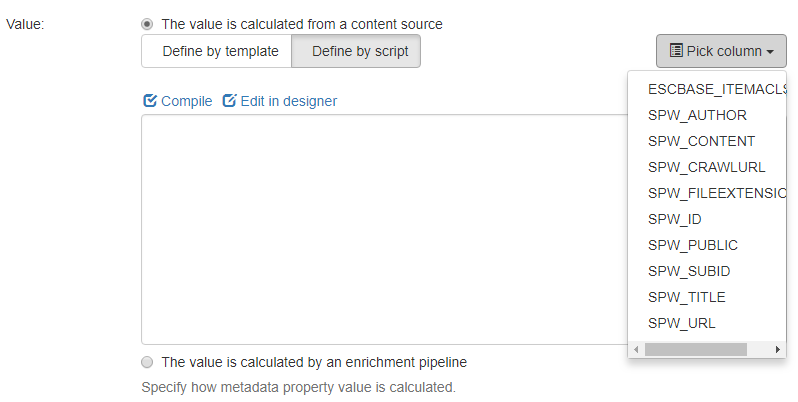 6. Click Define by script in the Value field to access the scripting pane.