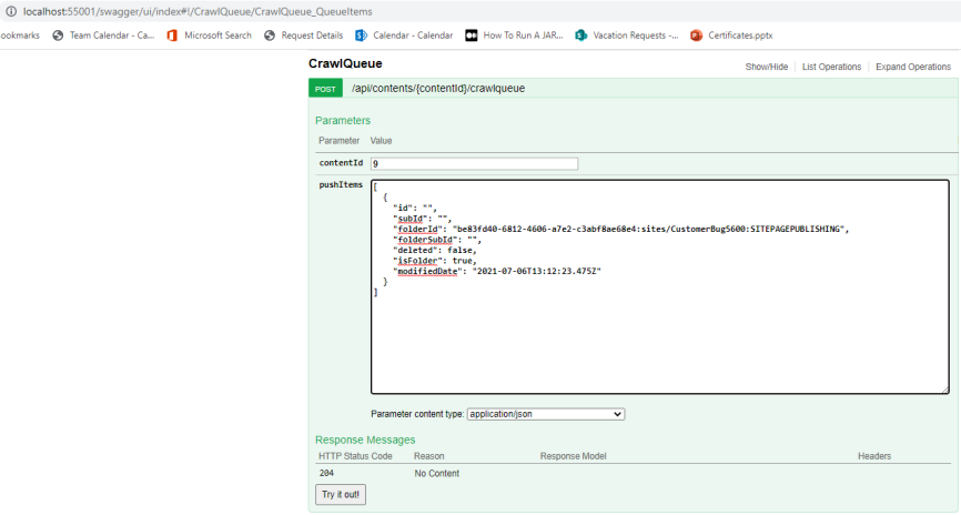 Use Swagger to test the CrawlQueue API and familiarize yourself with its methods and parameters.