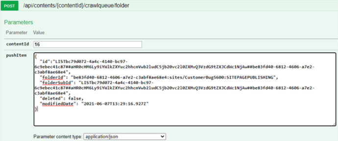 This endpoint is exposed by Connectivity Hub and it should be used to push items and folders for crawling.