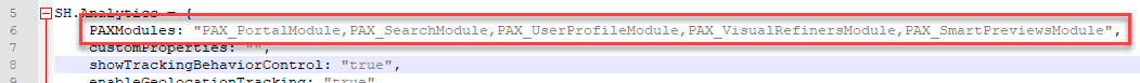 SH.Analyticssettings in the modules/SmartHubResourceLoader/DefaultModuleSettings.jsfile. - Copy the settings described below into your custom settings file, such as CustomResultsSettings.js for your custom Results.html page.
