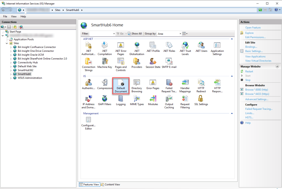 - Open Internet Information Services (IIS), and select your SmartHub site.