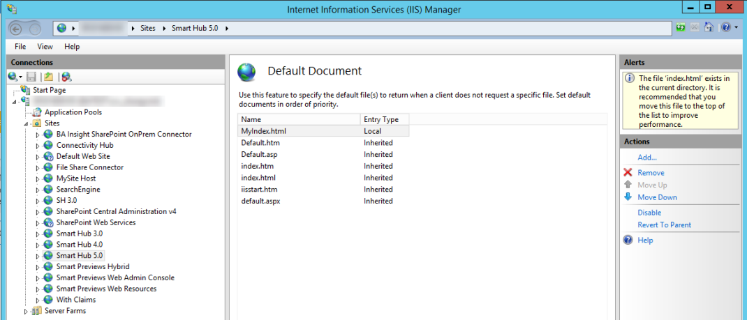 Follow these steps to reset the IIS "Default Document" for your SmartHub site.