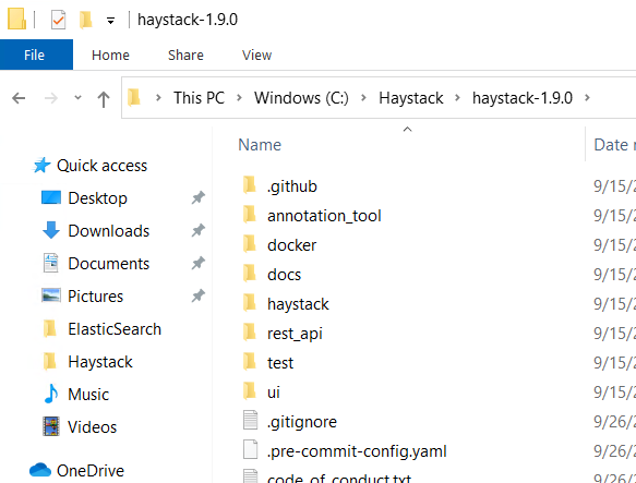 - For example, cd "C:\Haystack\haystack-1.9.0"