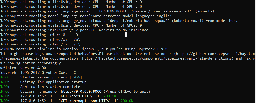 uvicorn rest_api.application:app --host 0.0.0.0 - If everything is running correctly your command prompt should show something similar to this: