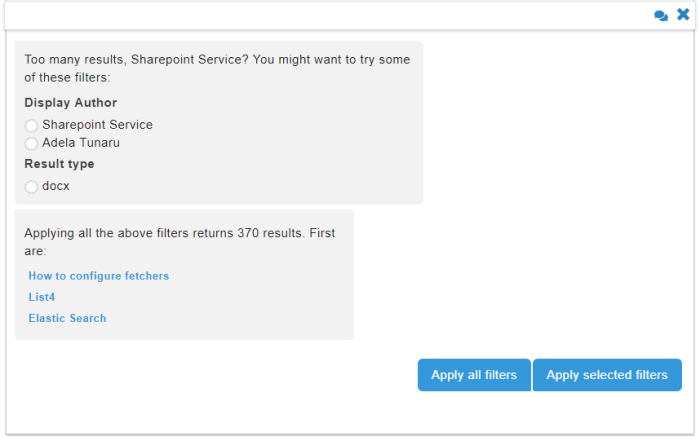 2. Based on the number of the displayed results, the bot opens the personalization panel or else suggest other similar queries run with success by other users.