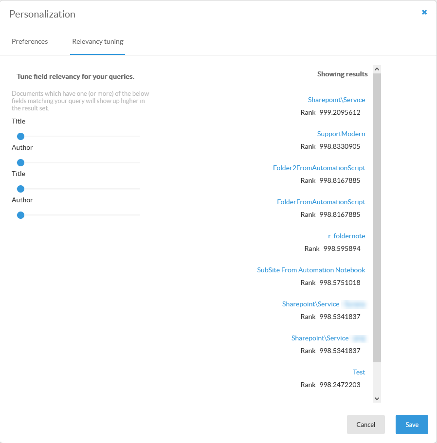 4. Click the option "I didn't find what I need" and the Relevancy tuning dialogue is presented: