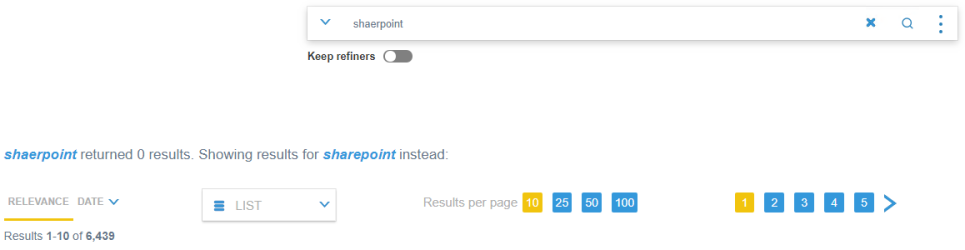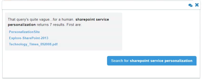 4. Similarly, for a search query such as "sharepoint", the Bot might suggest a more specific query text based on analytics: