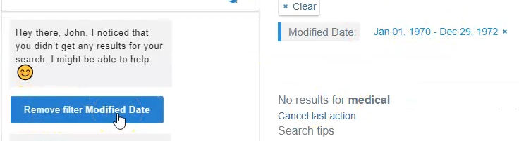 For example, if a user gets no results returned to their query, the Bot might suggest popular alternatives (gathered from analytics) that are similar to what the user initially searched for.