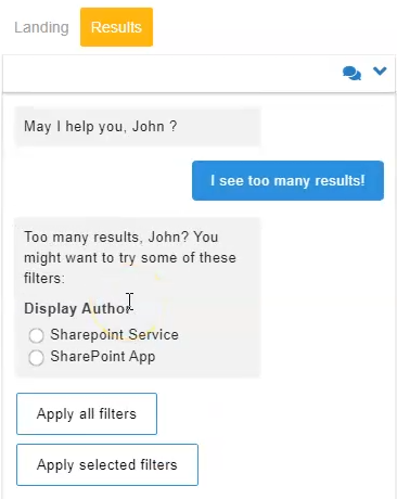 After some time without any user interaction, or after the user reaches a certain page, the Bot might suggest applying popular filters recorded with Analytics.