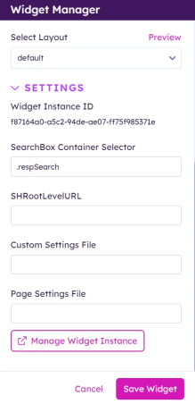 Configure the SmartHub SearchBox Widget