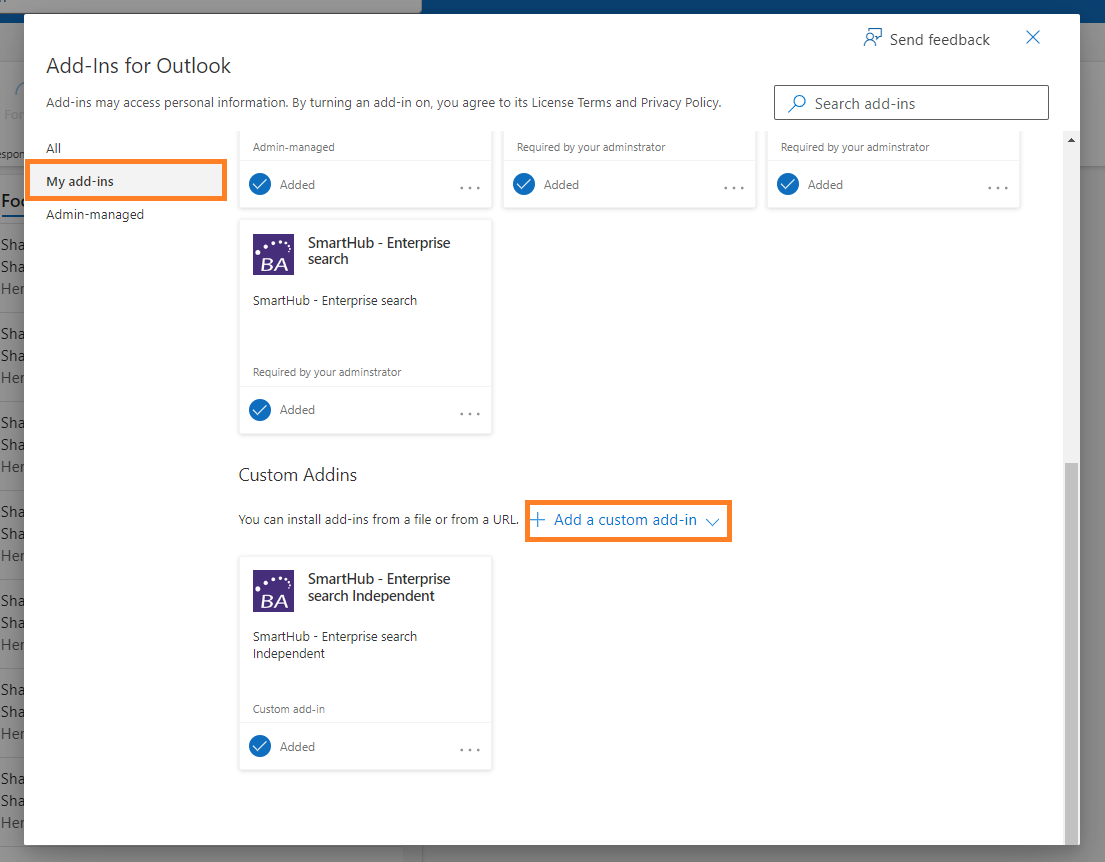 - In the Custom Addins section, click Add a custom add-in > Add from file.