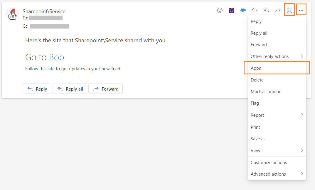 From the actions panel, click on the Apps or More actions button > Apps.