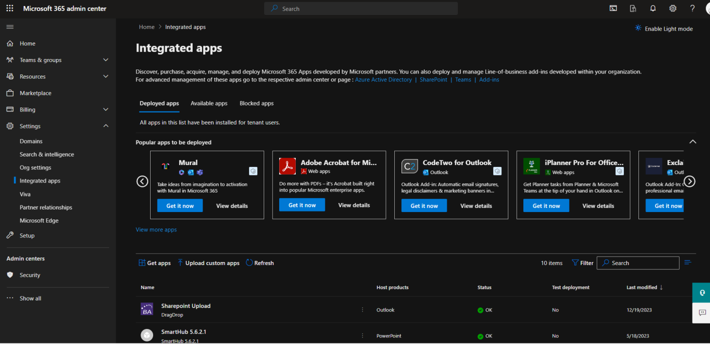 - Access the Integrated apps page as an Administrator: https://admin.microsoft.com/AdminPortal/Home?#/Settings/IntegratedApps