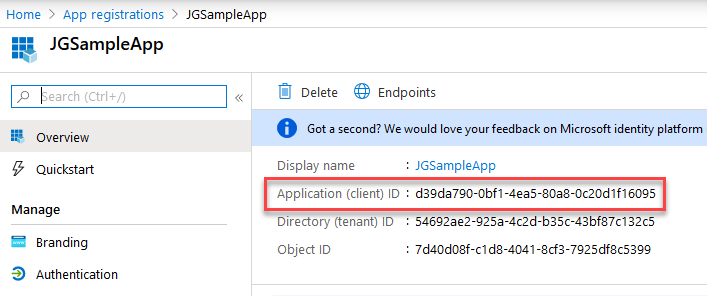 3. Click <YourApp>Overview and make a note of: