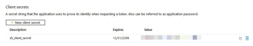 2. Copy the new client secret value. You cannot retrieve the secret value after you perform another operation or leave this page.