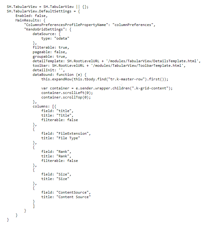 - You can change the TabularView options by editing the TabularView code in your custom settings file.