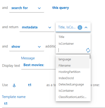 - "answer" - "HTML response": What the bot tells the user before the results will be listed.