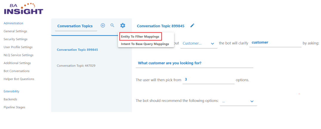 - Choose the NLQ Service intents that match this Conversation Topic.