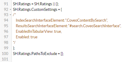 - Paste the copied settings inside section SH.Ratings.CustomSettings.