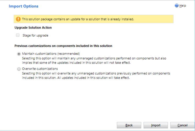 - Click on Import and select the new zip archive with the solution to upload.