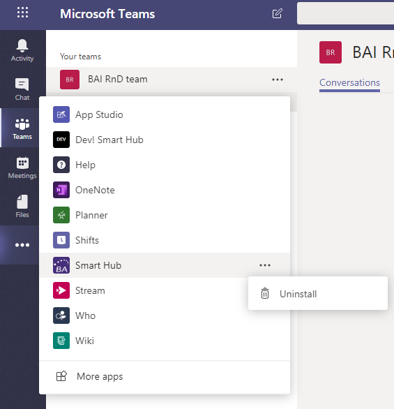 How to Uninstall the SmartHub Teams App