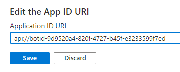 2. If an existing app was used, set the Application ID URI as follows: api://botid-<MicrosoftAppId>.