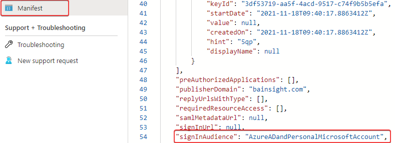 2. Change the property for signInAudience to AzureADandPersonalMicrosoftAccount.