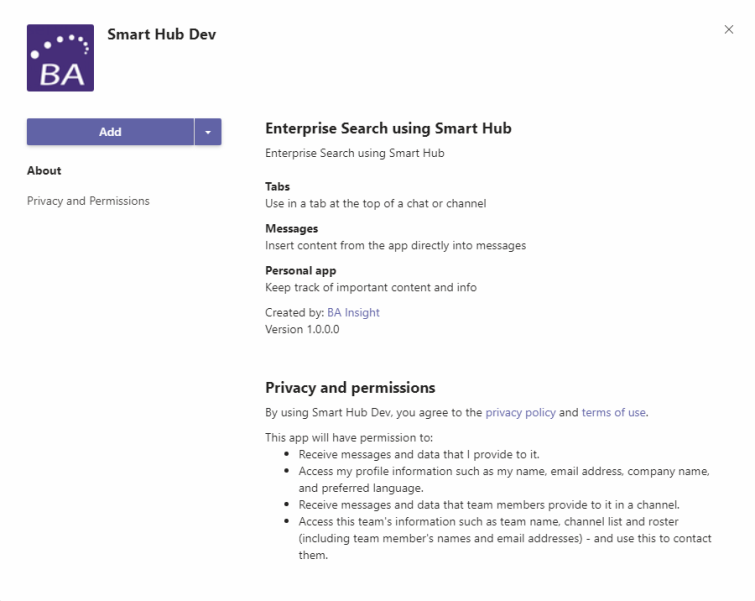 • Any user will be able to install the Hub for himself or the Teams he is a member of.
