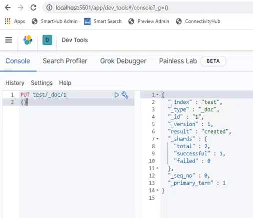 testindex pattern. - Go to Kibana address > Dev Tools.