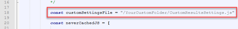 - Your Index or Results page custom settings file (.js):