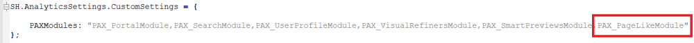 - Copy the contents of the setting PAXModules under the section SH.Analytics.DefaultSettings.