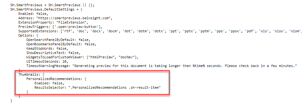 Scroll down to around line 318, the SH.SmartPreviews section. This is where you will insert your Document Thumbnails settings.