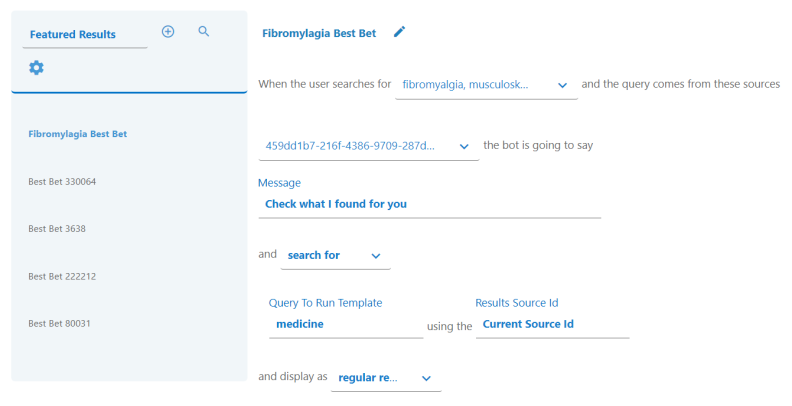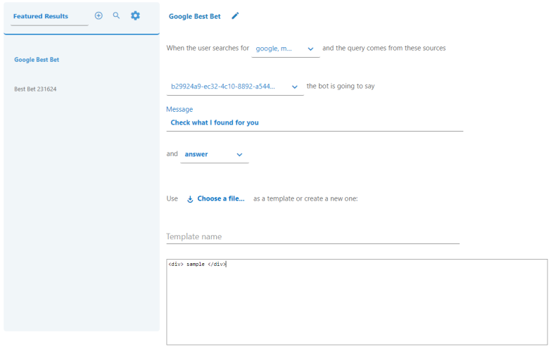 Note: Bot Templates are available for "Questions and Answers" and "Featured Results"