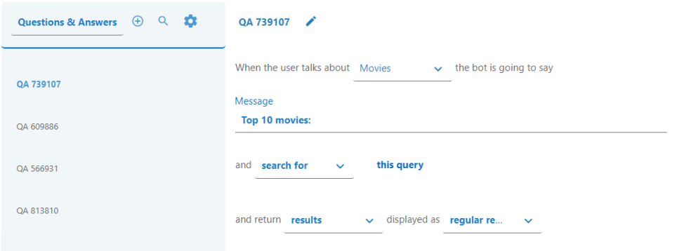 For more details about configuring Questions and Answers types, including using intent, see How to Automatically Generate Answers to User Questions.