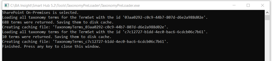 - Run the TaxonomyPreLoader.exe file or create a Windows Task to run the tool based on a schedule.