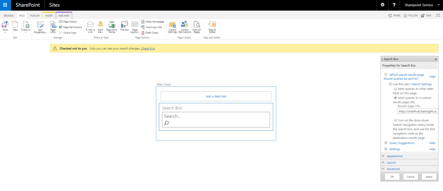 8. (Optional) Perform steps 1-7 for any Search Box web part which you need to redirect searches to SmartHub.