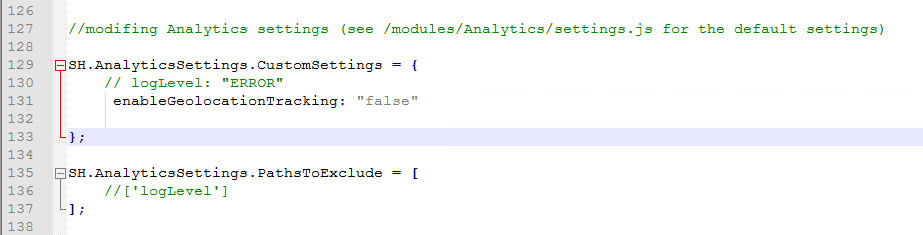 Note that you can copy and modify any setting you desire. - Open your custom Results settings file and paste the setting under the SH.AnalyticsSettings.CustomSettings block.