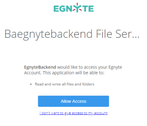 2. After logging in, you are redirected to a page where you grant access to the Egnyte app.