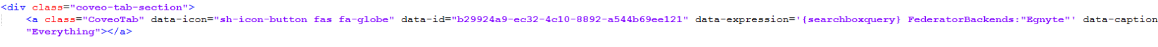 2. Reference the Egnyte search engine name within a coveo-tab-section. See the example below: