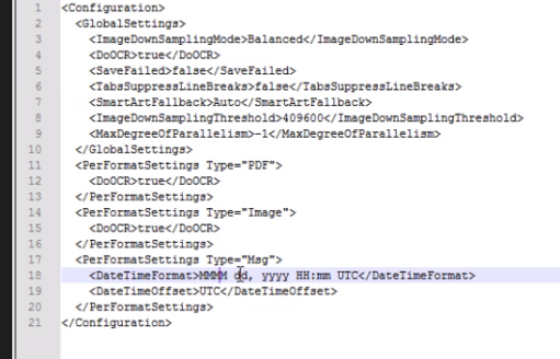 - Edit the parameters <DateTimeFormat> and <DateTimeOffset> as you see fit.