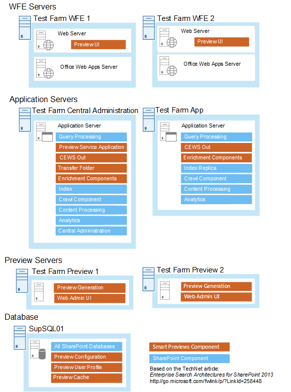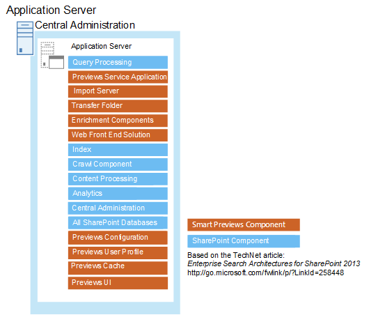 For this reason, it is possible to run the Smart Previews server on the same box as your SharePoint index server, as shown below.