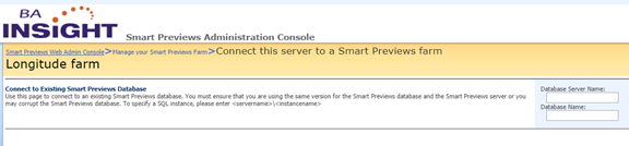 - Go to Smart Previews Web Admin Console site from IIS Manager and select Connect to existing Configuration Database.