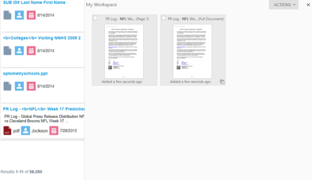 - Go to your search page, enter a query, and click on the binoculars icon to see your document Preview: