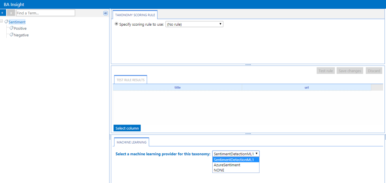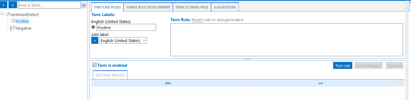- In the following example, the Taxonomy "SentimentDetect" has two terms defined