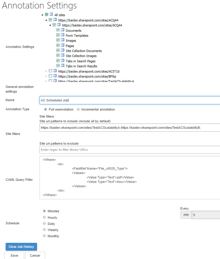 - You can choose to enable annotation scheduling and select which document sites are/are not annotated using this process.