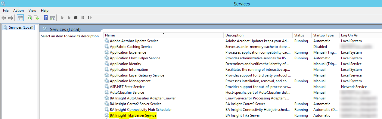 - The Tika Server Windows Service is installed during the installation of the AutoClassifer Engine