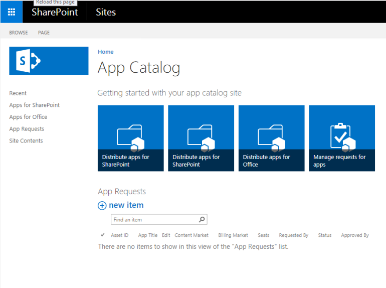 - Click "Apps for SharePoint."